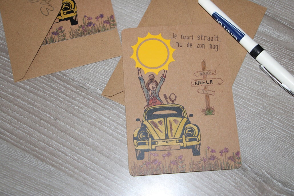 Ik kon met mijn idee terecht bij 'Echt Oprecht', namelijk bij Margot L. (waarmee ik samen leiding mocht geven in Akabe de Iris, jeugdbeweging voor kinderen met een beperking). Zij maakt zelf unieke wenskaarten voor allerlei gelegenheden.